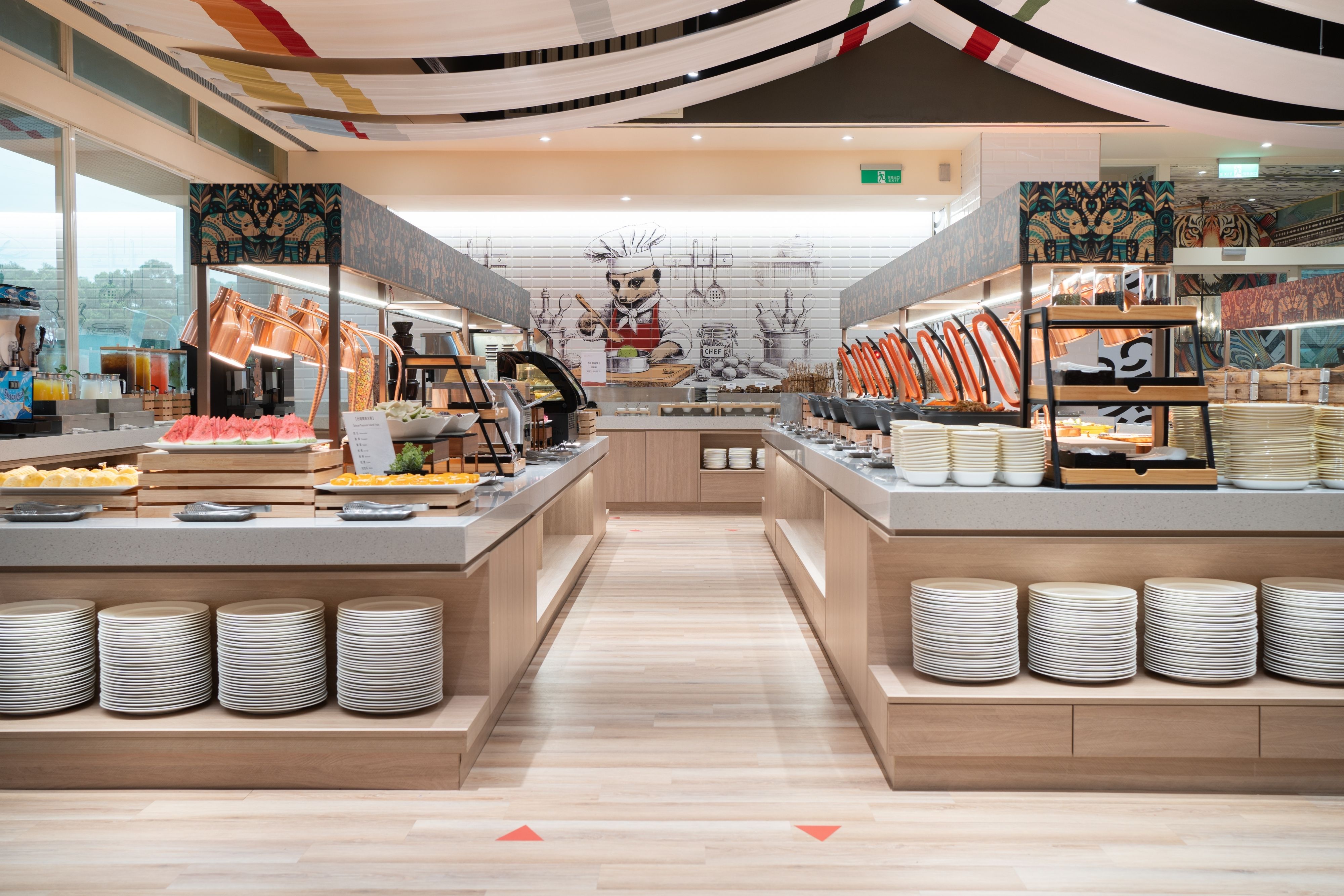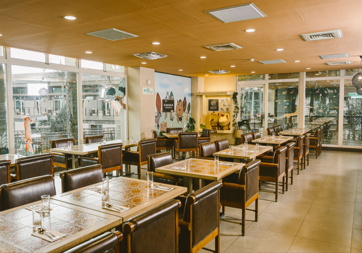 在非洲氛圍場域空間無限延伸的環境下,遠眺戶外景觀區多種非洲草食性動物,品味最新鮮健康的百匯料理,滿足您挑剔的五感。