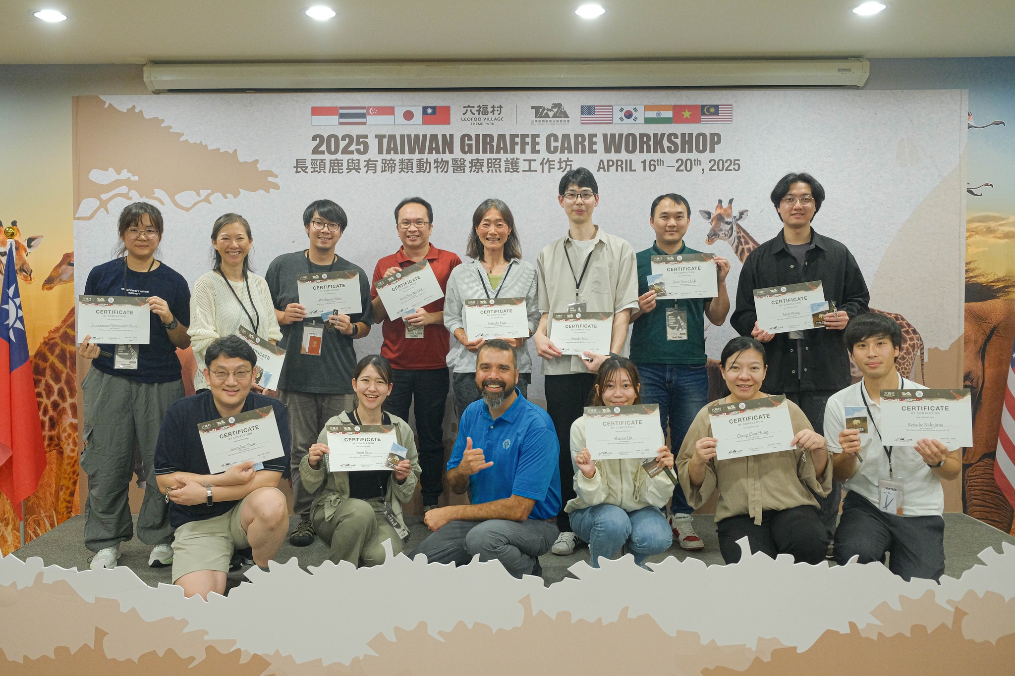 此次工作坊邀請重量級講師授課,包括美國動物園獸醫協會前任主席 Michele Miller 博士、南非克魯格國家公園獸醫主管 Peter Buss 博士,以及新加坡野生動物保育集團動物醫療部副部長 Abraham Mathew 博士。課程內容涵蓋動物麻醉技術、保育經驗分享及大型動物健檢的實務操作。來自美國、南非、日本、泰國、新加坡、印尼、馬來西亞等地的與會者,與園區內部學員深入交流與請益,讓六福持續接軌國際標準。